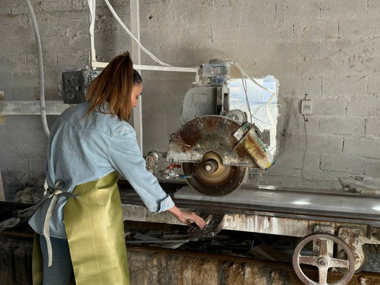Bursa'nın İznik ilçesinde, eşiyle birlikte mermer atölyesi işleten 42 yaşındaki Hazel Kara, hem annelik görevini yerine getiriyor, hem de erkeklerin hâkim olduğu bir sektörde büyük bir başarıya imza atıyor.