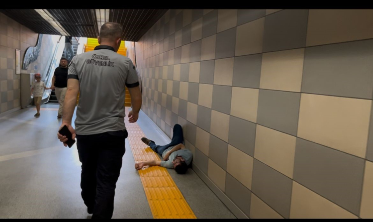 Güvenlik görevlilerinin uyarılarına rağmen yerinden kalkmayan şahıs, "Ben neredeyim, bırakın yatayım" diyerek yanıt verdi. Bölgeden geçen vatandaşlar şaşkın bakışlarla durumu izlerken, görevli güvenlik personeli şahsı kaldırmak için çaba sarf etti.