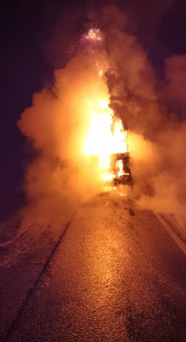 İhbar üzerine bölgeye itfaiye ekipleri sevk edildi. Ekiplerin müdahalesiyle söndürülen TIR, kullanılamaz hale geldi.