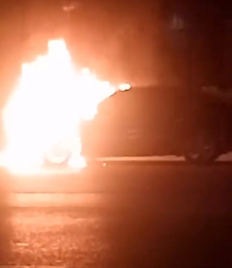 Bir anda alevlerin sardığı araç alev topuna dönünce ihbar üzerine bölgeye itfaiye ekipleri sevk edildi.