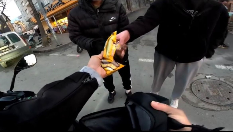 O anları kask kamerası ile kaydeden motosikletlinin diğer sürücü ile yanındaki arkadaşına kek ikram ettiği anlar da görüntülere yansıdı.