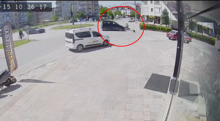 Bu arada hafif ticari araç sürücüsünün ifadesi alındıktan sonra serbest bırakıldığı öğrenildi. Muhtarın ağır yaralandığı kaza, çevredeki bir iş yerinin güvenlik kamerasına yansıdı.