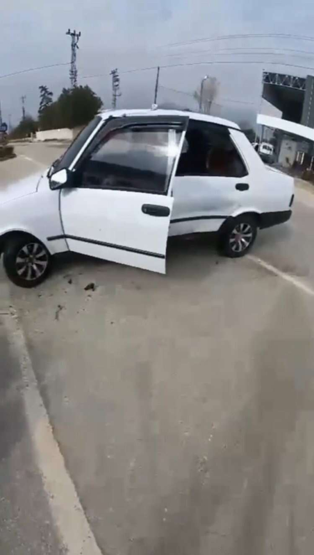 Görüntülerde, otomobil sürücüsünün tabelaya rağmen u dönüşünün yasak olduğu yerden sinyal vermeden geçiş yapmaya çalıştığı görüldü.
