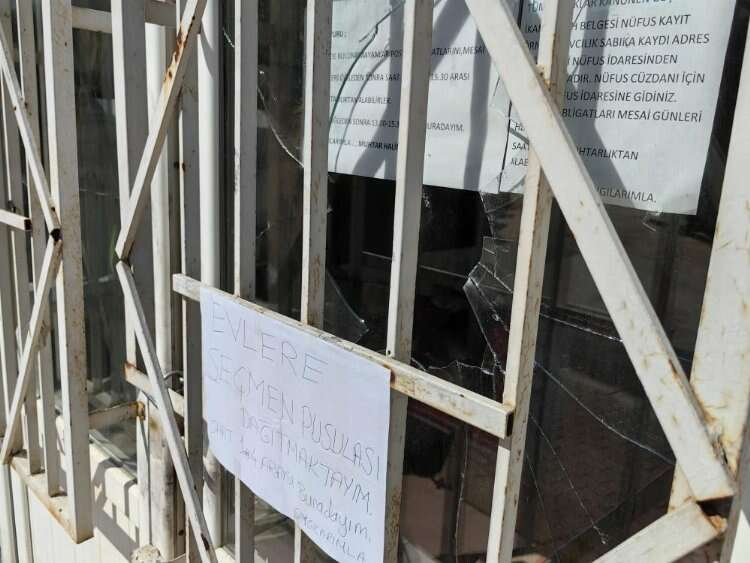 Sabah muhtarlık binasına gelen muhtar Halim Yiğit, kapı camının kırıldığını gördü.