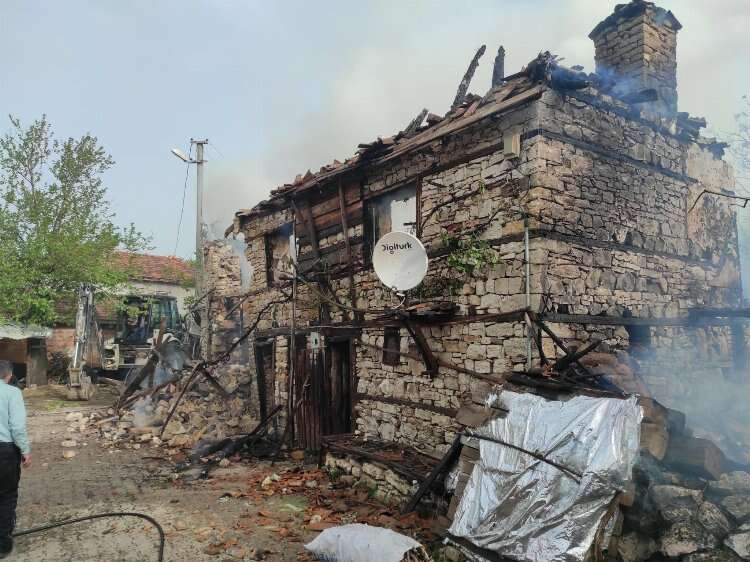 İtfaiye ekiplerinin müdahalesiyle söndürülen yangında ev kullanılamaz hale geldi.