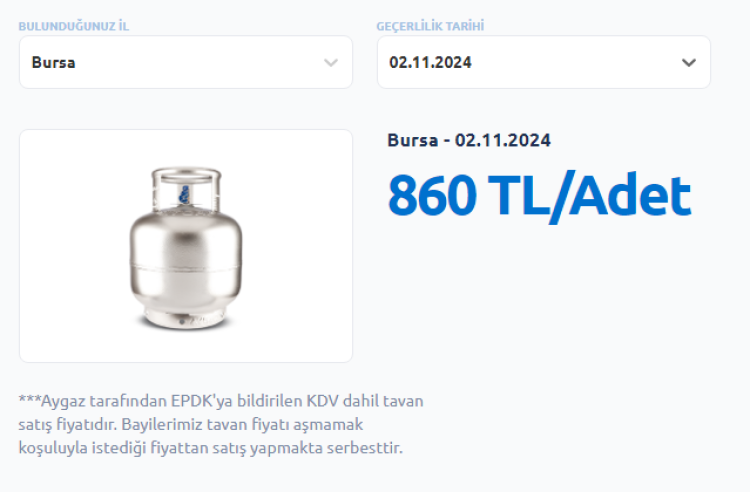 Yapılan son zamla birlikte mutfak tüpünün Kasım ayı fiyatı 860 TL oldu.