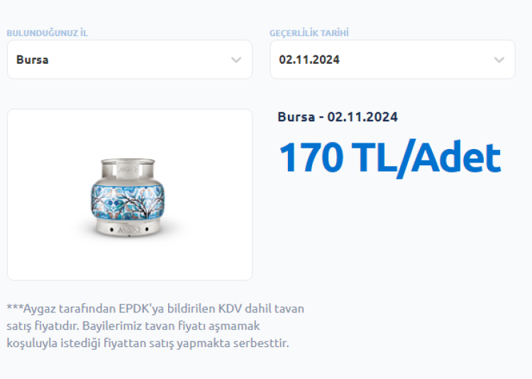 165 TL'den satılan 2 kilogramlık piknik tüpünün fiyatı da 170 TL'ye çıktı.