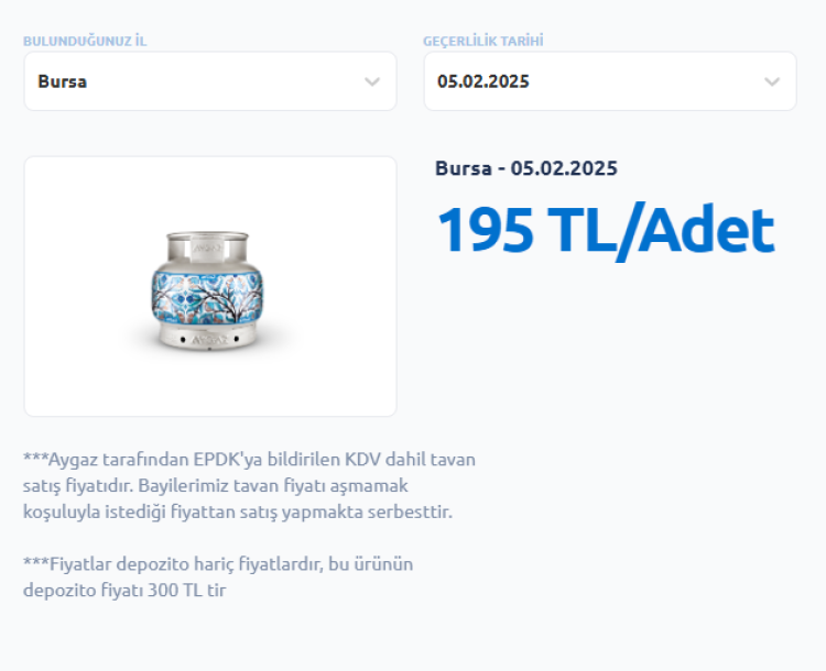 Öte yandan 2 kilogramlık piknik tüpü de 195 TL'den 200 TL'ye çıktı.