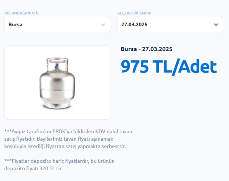 2024'ün Mart ayında 691 TL olan mutfak tüpü bu yılın ilk ayında 3 kez zamlanarak 975 TL oldu.