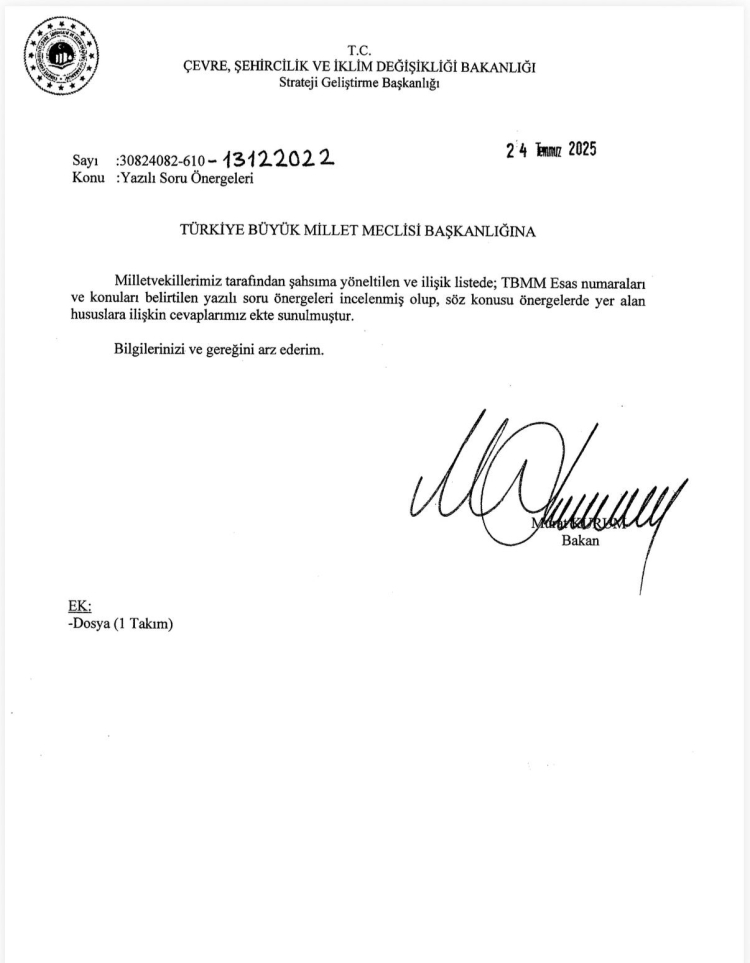 Bakanlığın yanıtında, Nilüfer Çayı’na ilişkin rapor olup olmadığı, bilimsel çalışmaların değerlendirilip değerlendirilmediği ve kirliliğin temel kaynaklarına dair sorulara yer verilmedi. Son 5 yıla ait su analiz sonuçlarıyla kimyasal, biyolojik ve fiziksel kirlilik düzeyine ilişkin veri paylaşılmazken, PAH ve PCB değerlerine dair bilgi de sunulmadı. Sanayi tesislerine yönelik denetim ve ceza uygulandığı belirtilirken, detay verilmedi; çayın temizlenmesine yönelik eylem planına ilişkin sorular da yanıtsız kaldı.