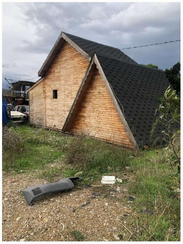 (2) nolu Ahşap Ev: Ahşap evin içinde 1 oda, salon, Salon içerisinde mutfak tezgahı, banyo-wc ve asma kat bulunmaktadır. Bu ahşap yapı tamamen harap olup enkaz değeri vardır.