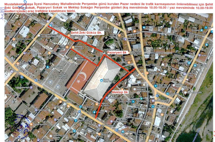 Mustafakemalpaşa Hamzabey Mahallesi’nde kurulan pazar nedeniyle trafik yoğunluğunu azaltmak için bazı sokaklar belirli saatlerde araç trafiğine kapatılacak.