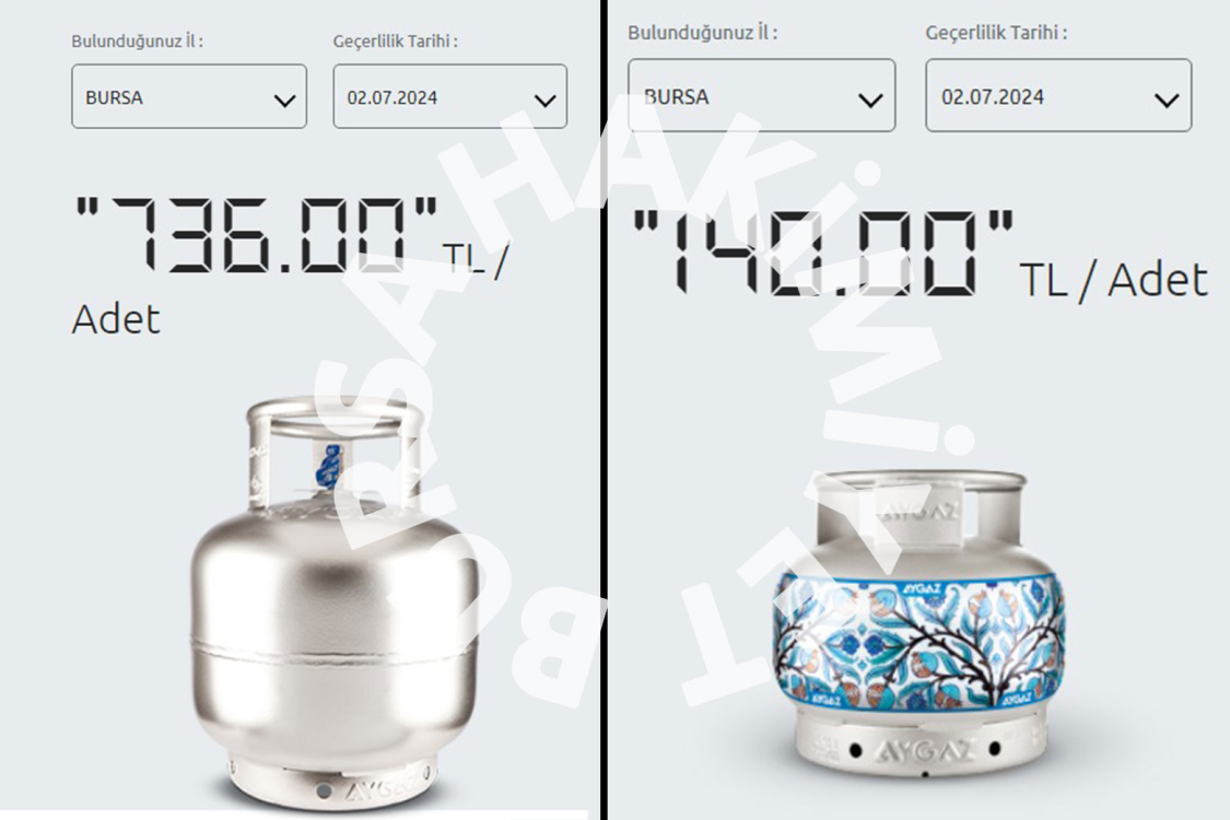 Bursa'da geçen yılın Temmuz ayında 373 TL'den satılan Aygazmutfak tüpü, bugün yapılan 50 TL'lik yeni zam ile 736 TL oldu. Mutfak tüpüne yapılan son zamla birlikte tüpteki 1 yıllık fiyat artışı yüzde 97 oldu. 2 kilogramlık piknik tüpü ise 131 TL'den 140 TL'ye çıktı. Piknik tüpü geçtiğimiz yılın Temmuz ayında 74 TL'den satılıyordu.