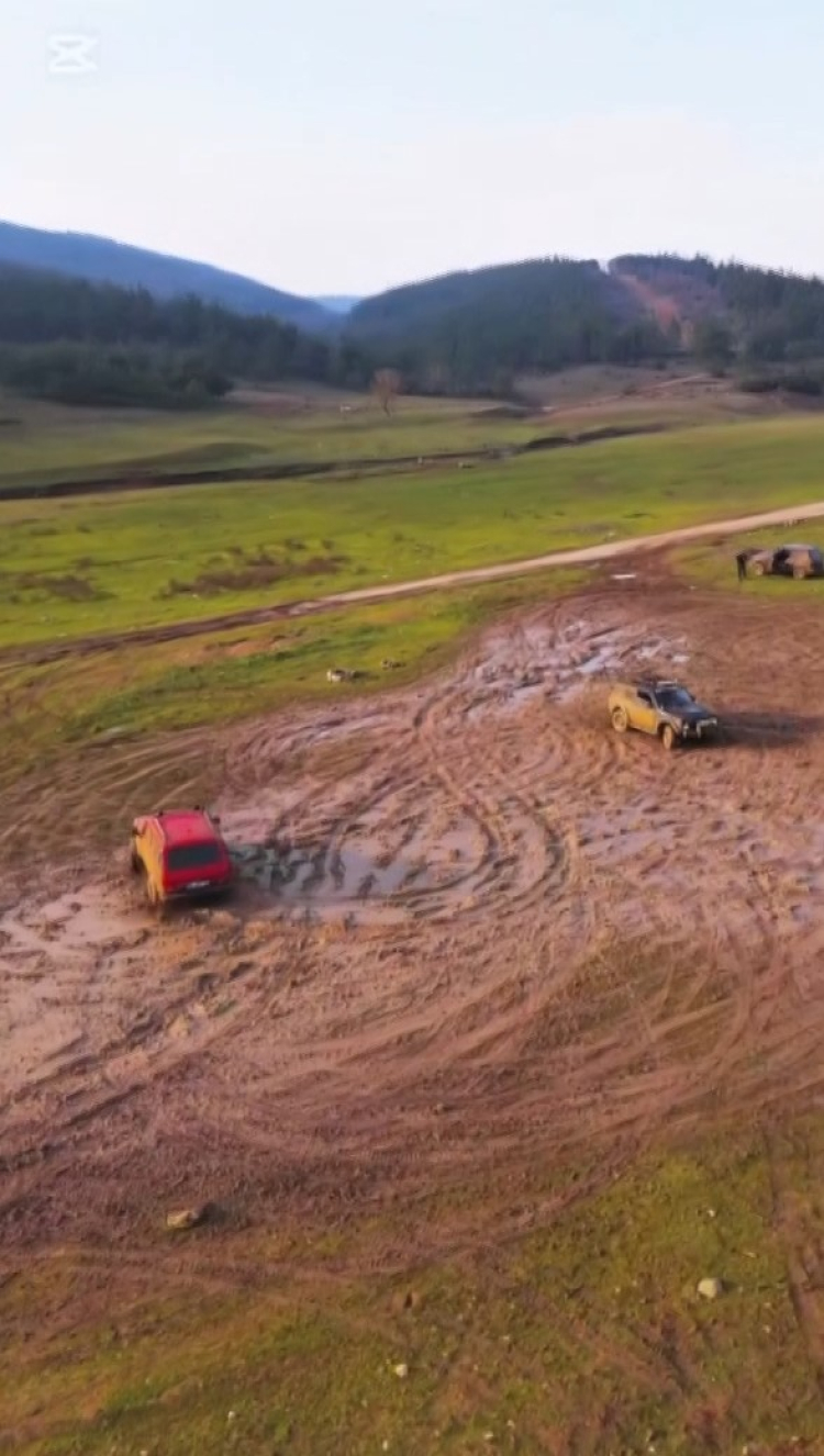 Bursa'da güzel havayı fırsat bilen off-road grubu, doğanın tadını çıkardı. Çamur içinde adeta dans eden 4x4 araçlar havadan görüntülendi.