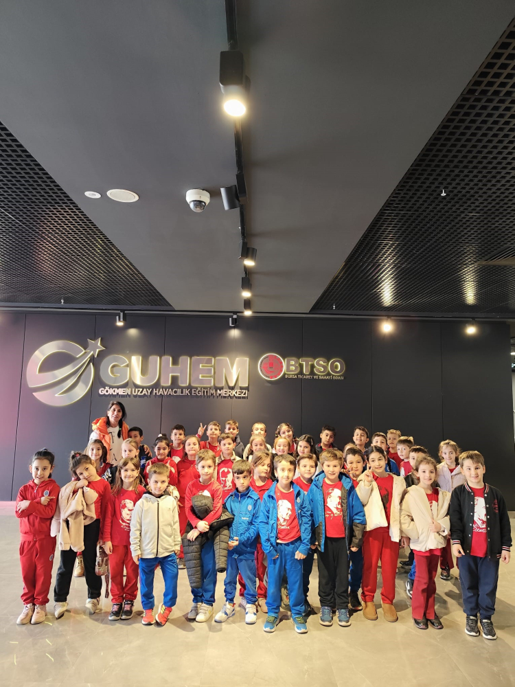 Bursa Ticaret ve Sanayi Odası (BTSO) öncülüğünde kurgulanan merkezde düzenlenen "Uzay-Havacılık Minikler Kulübü" etkinliklerinde İbrahim Uyar İlköğretim okulu 1'inci sınıf öğrencileri, özel hazırlanan Çocuk Galerisi’nde eğlenerek öğreniyor.