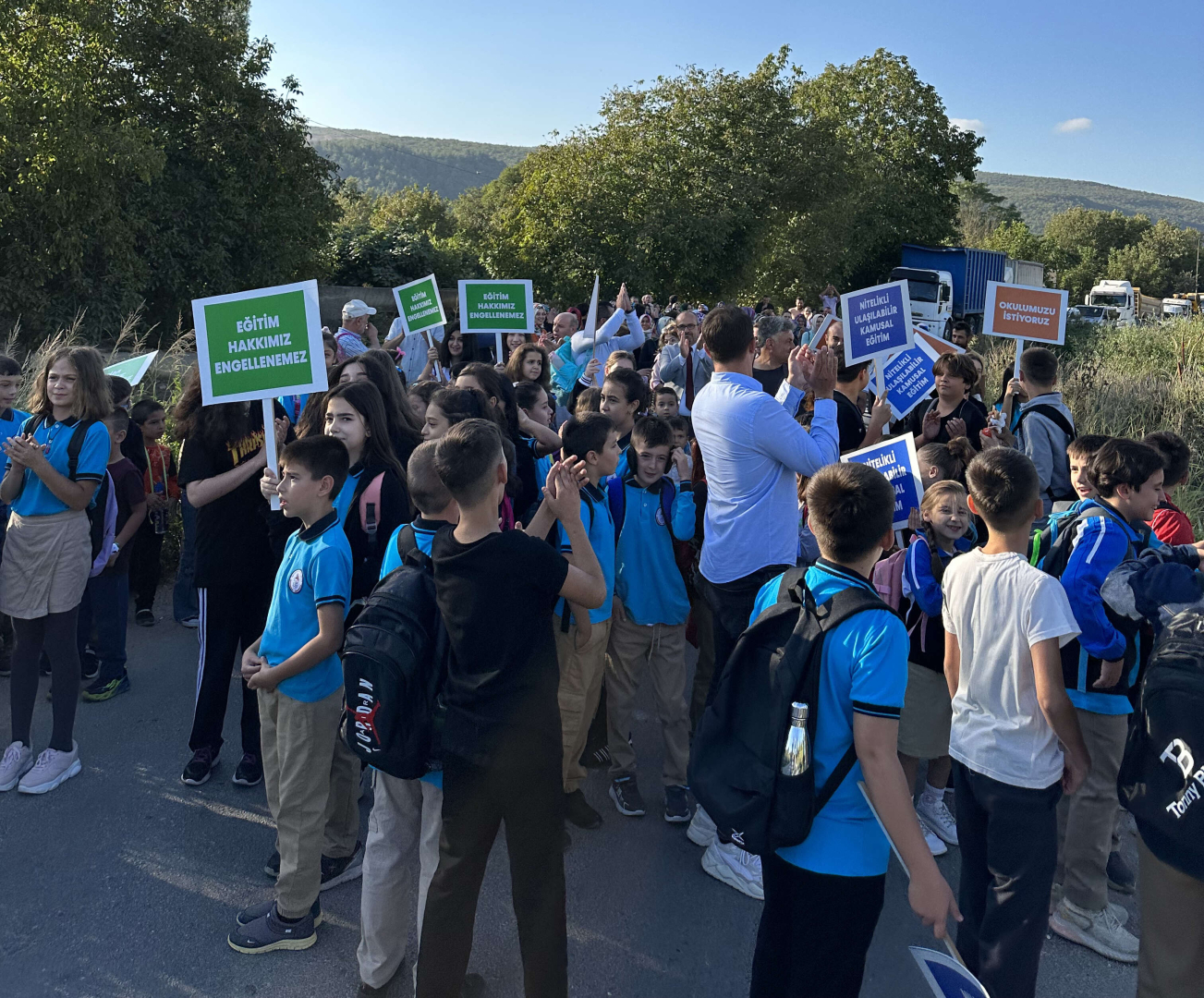 Ellerinde "Okulumuzu istiyoruz" ve "Eğitim Hakkımız Engellenemez" yazılı pankartlar taşıyan çocuklarla birlikte 1 saatlik yolu yürüyen Nilüfer Kent Konseyi Genel Sekreteri Emre Karagöz, Hasanağalı çocuklar için okul yolunun çile yoluna döndüğünü belirterek konuşma yaptı.