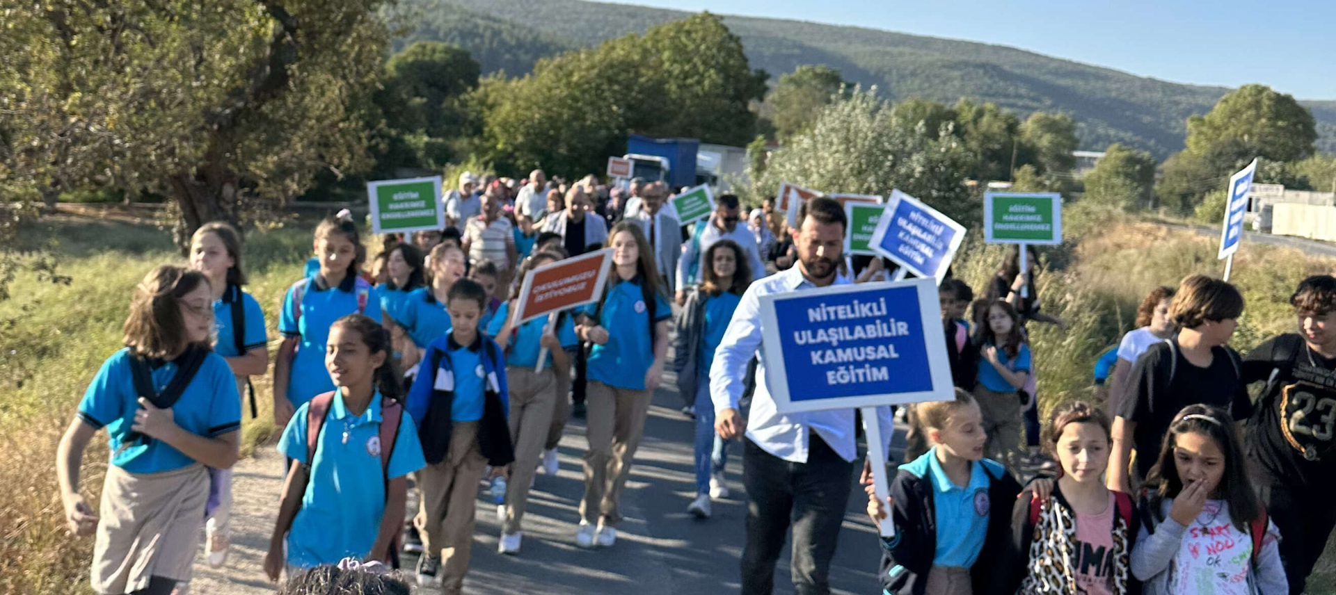 Nilüfer Kent Konseyi Genel Sekreteri Emre Karagöz, Milli Eğitim'e seslenerek, "Okullarına ulaşmak için 1 saattir köpeklerin arasında, toprak yolda yürüyor. Çocukların eğitim hakları engellenemez. Çocuklar okumak ve okullarına kavuşmak istiyor. Bugün Hasanağalılar, anneler, babalar çocuklarla bu yolu yürüdük. Velilerin sesine kulak verin. Hasanağa'nın okulunu bir an önce yapın. Yarından itibaren Hasanağa ile Kızılcıklı arasına servis istiyoruz" diye konuştu.
