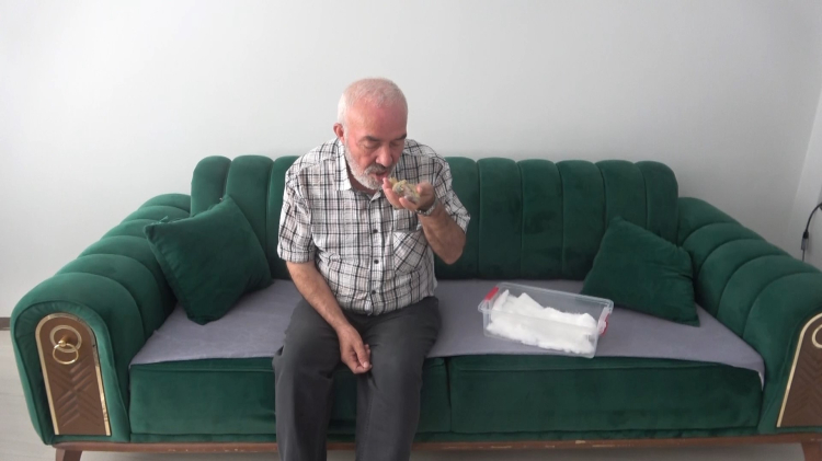 Yavru kuşu tıpkı annesi gibi besleyen Ovalı, "Binanın arka tarafına düşmüş. Baktım ölüyor. Ağzımla ekmek çiğneyip besledim. Biraz da su verdim, biraz canlanmaya başladı. Yarım saat sonra tamamen canlandı. Bursa'da misafirim, burada kalsam besler büyütürüm ama bugün gideceğim. Bu kuşu gelinim bakacak, büyüyünce de bu evi unutmayacağına geri geleceğini düşünüyorum. Benim sesimi duyunca hemen ötüyor. Sabah kalkıp ağzımla besliyorum. O yüzden beni tanıyor" dedi.