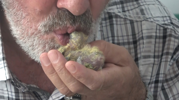 Bursa'da ölmek üzereyken bulduğu kuşu ağzıyla besliyor