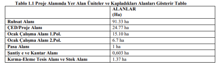 Yapılan başvuruda; 15,14 hektarlık alan artışı ile toplam ÇED alanının 24,77 hektara çıkarılmak istendiği bildirildi.