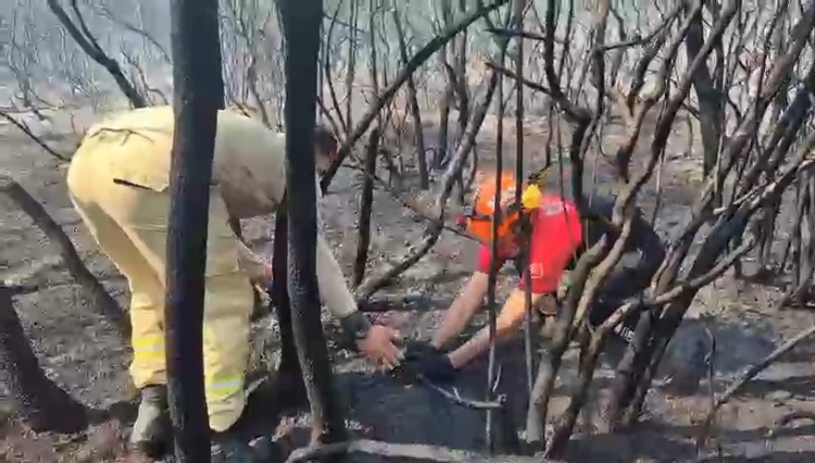 Bursa'da orman yangınında alevlerin arasında kalan kuş böyle kurtarıldı