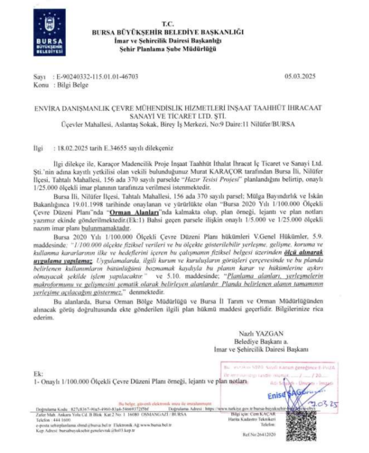 Yapılan ÇED başvurusu sonrası, Bursa Valiliği açıklama yaptı