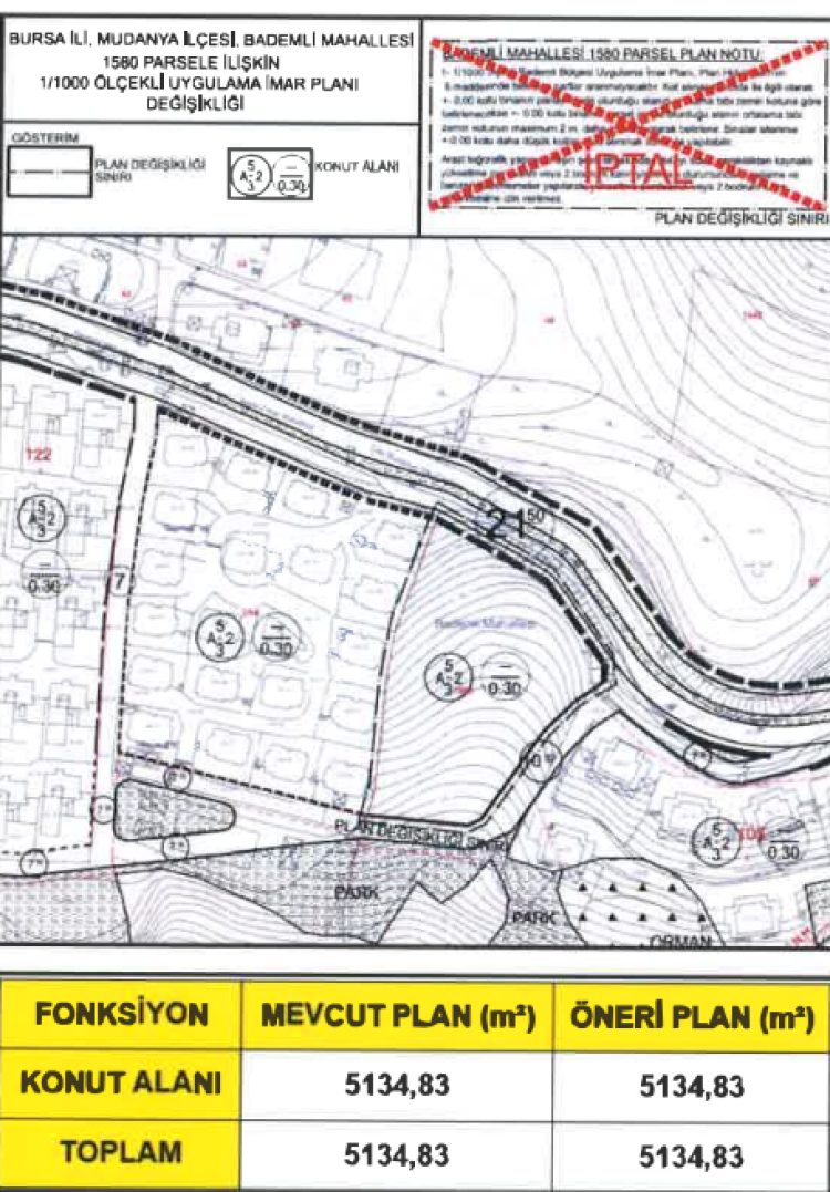 Mudanya Belediyesi, Bademli mahallesindeki 5 bin 134 metrekarelik arsa hakkında alınan imar kararını duyurdu.