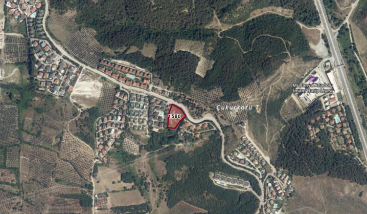 İmar planı değişikliği yapılan 1580 sayılı parselin iki cephesi konutlarla diğer yanları ise orman ve tarım alanlarıyla çevrili...