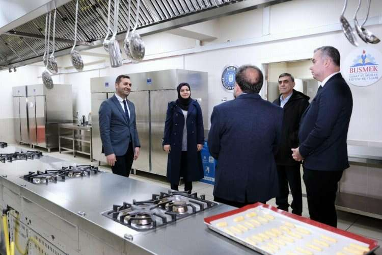 Öğrencilere başarılar dileyen heyet, ayrıca merkezdeki yenilenen mutfakları da yerinde inceledi. Ziyarete gelen heyete Hayat Boyu Öğrenme Şube Müdürü Sinem Şen ve BUSMEK Koordinatörü Aslan Şahin de eşlik etti.