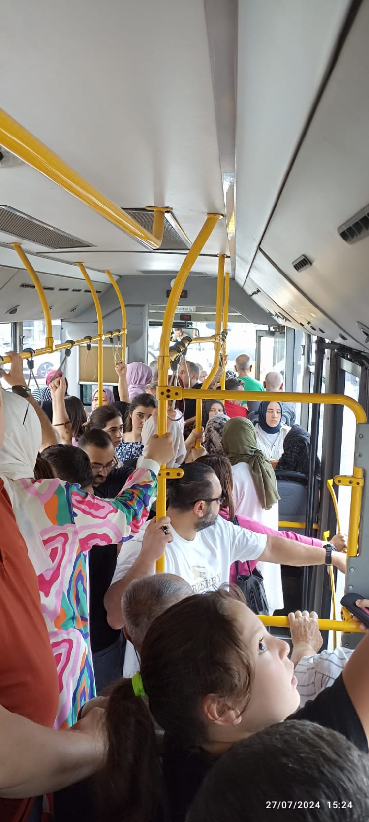 Toplu taşıma araçlarında sefer azlığından dolayı tıka basa seyahat etmek zorunda kalan vatandaşlar, klimalar çalışmadığı için sıcak havalarla da mücadele ediyor.