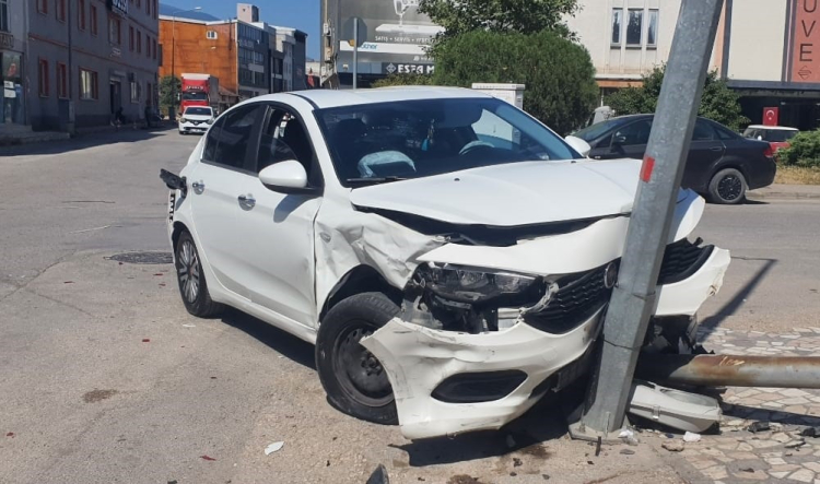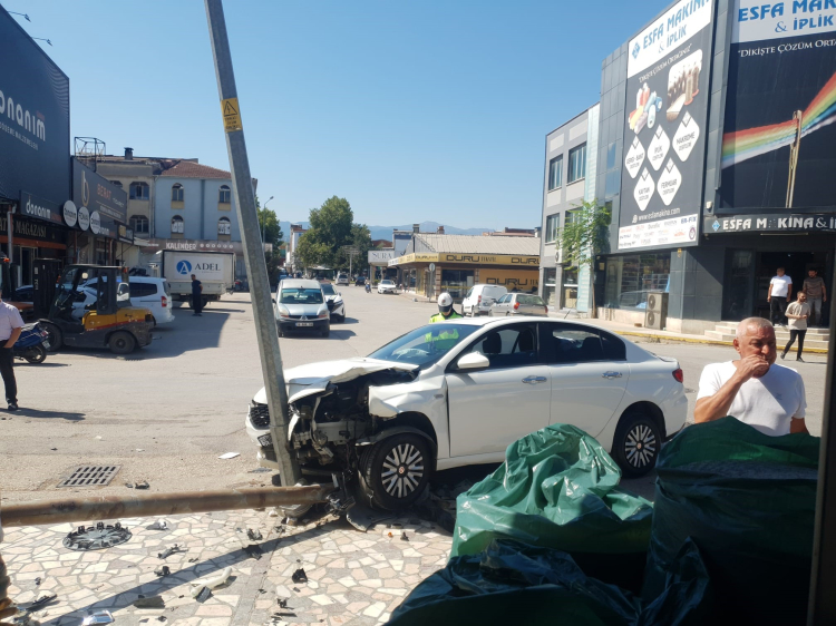 Çarpışmanın etkisiyle savrulan otomobil aydınlatma direğine çarptı. Kaza sonucu otomobilin sürücüsü yaralandı.