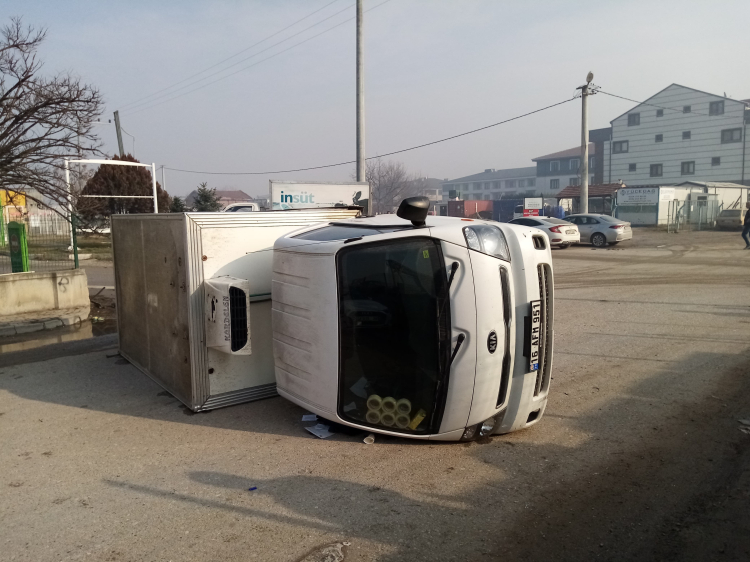 Çarpışmanın etkisiyle kamyonet devrildi. Kaza sonucu sürücüler yaralandı.