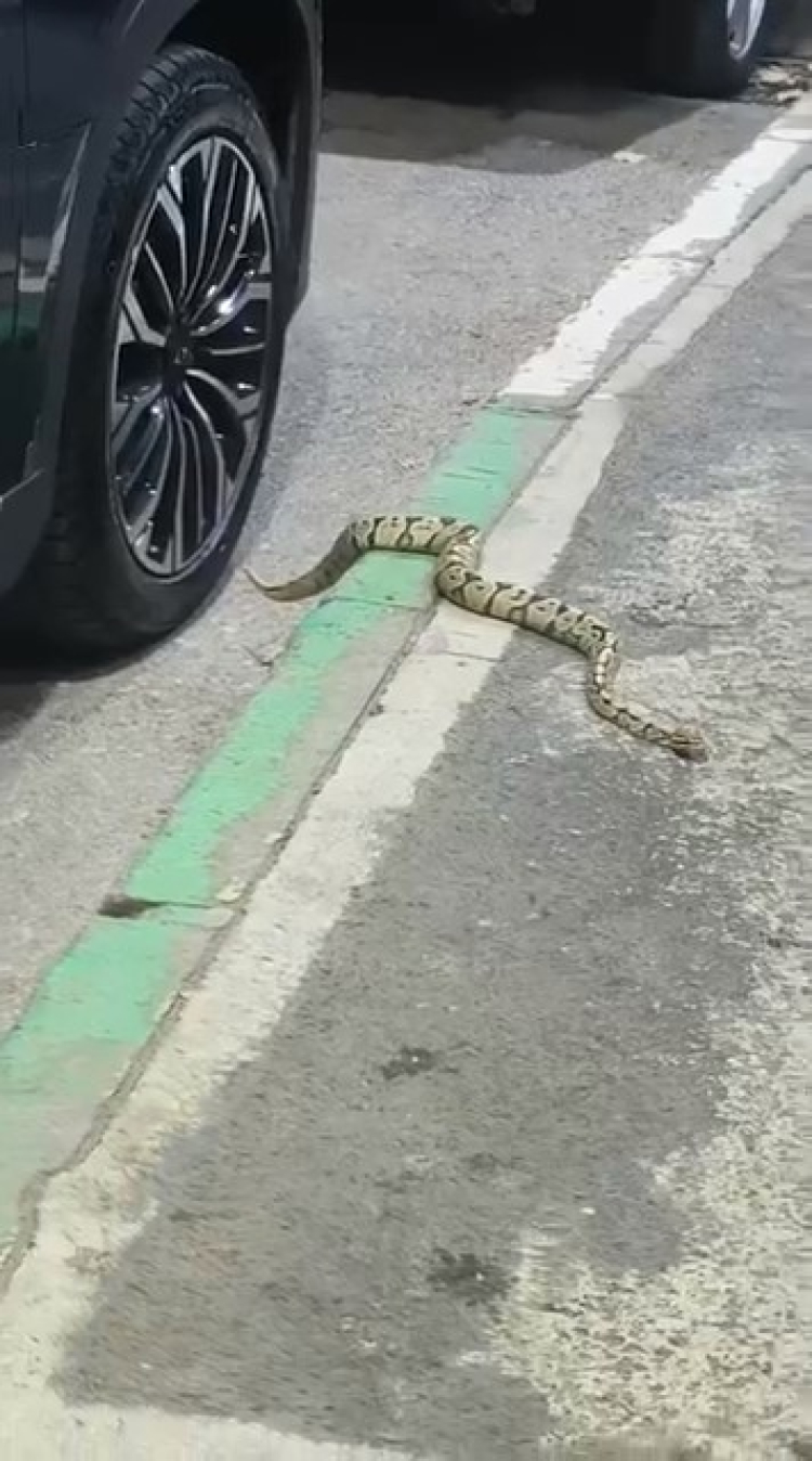 Kısa süre içinde olay yerine gelen vatandaşlar, aracın jantından sarkan sarı ve siyah desenli yaklaşık 1 metre uzunluğundaki bir yılanla karşılaştı.