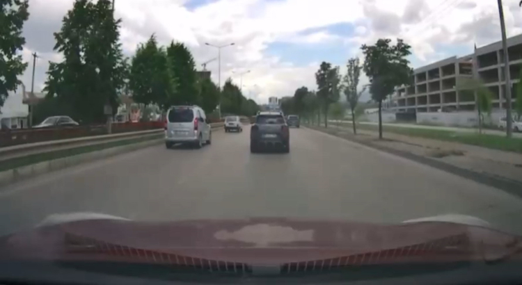 Diğer sürücülerin ani fren yapmasıyla olası bir kazanın önüne geçilirken, o anlar başka bir aracın kamerasına yansıdı.
