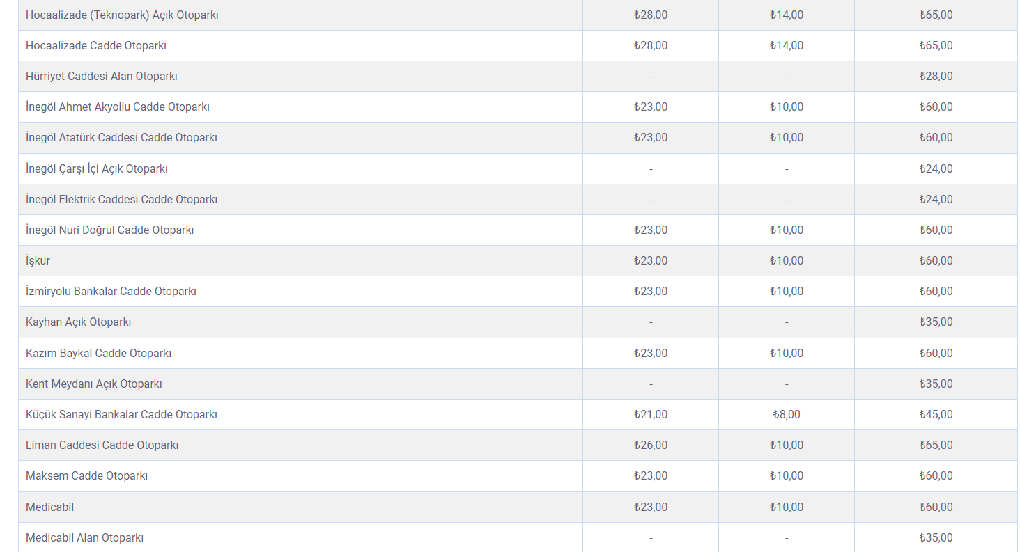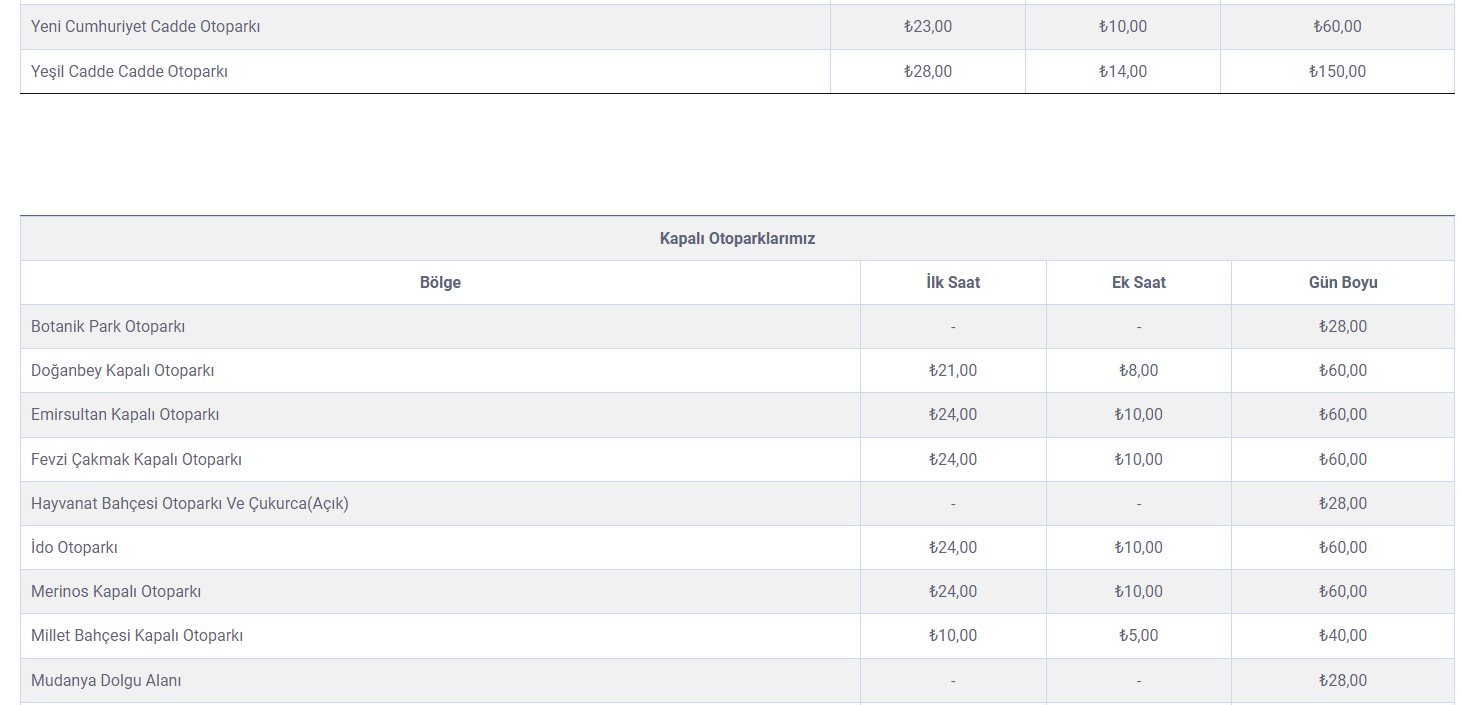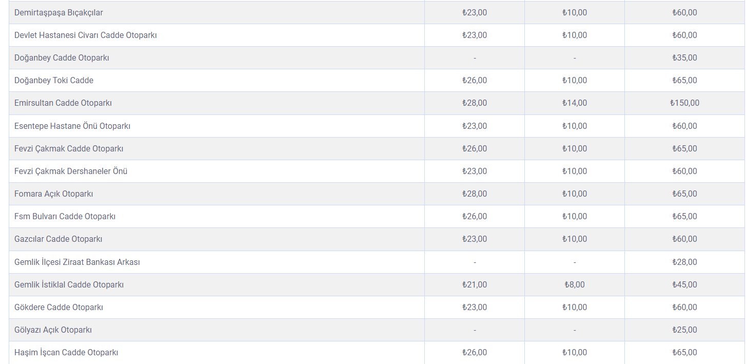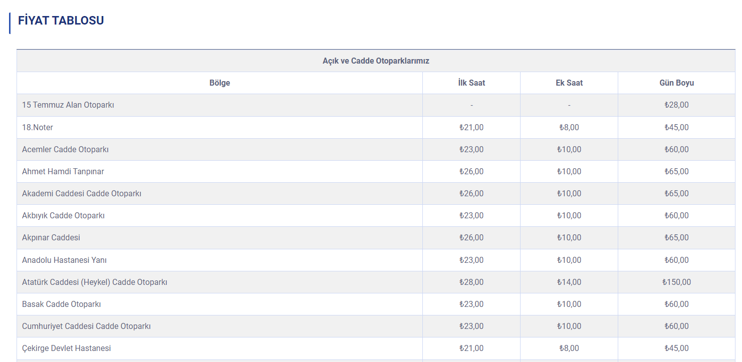 İŞTE OTOPARK FİYATLARININ GÜNCEL LİSTESİ