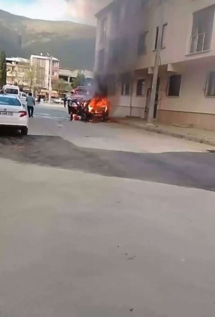 Araçta büyük hasar bulunurken yangının çıkış sebebi araştırılıyor.