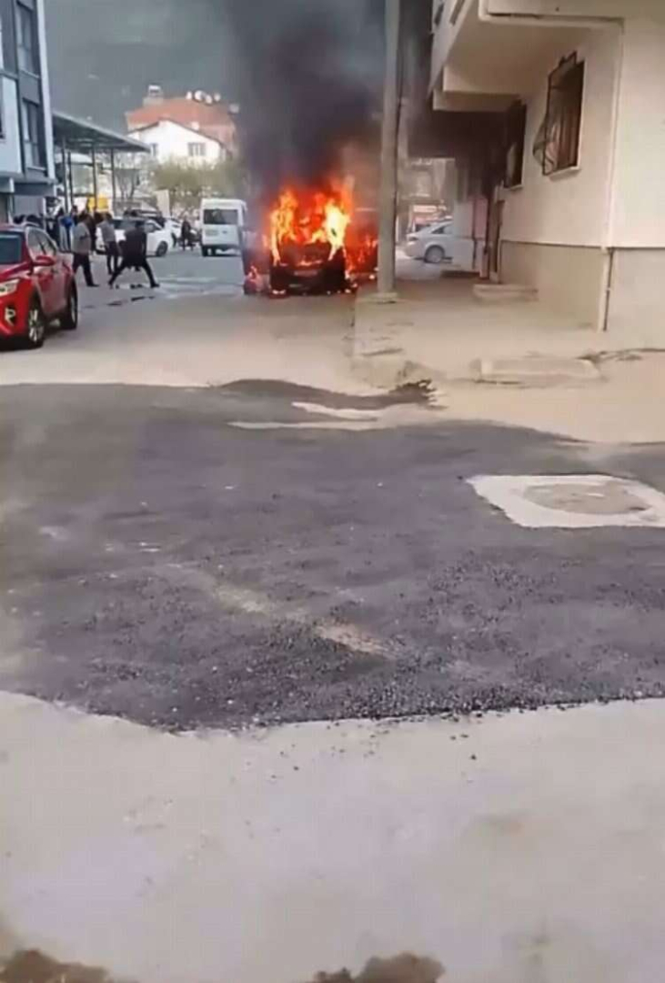 Bursa'da park halinde alev alan otomobil küle döndü!