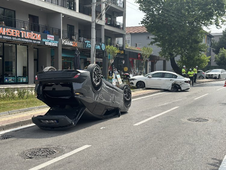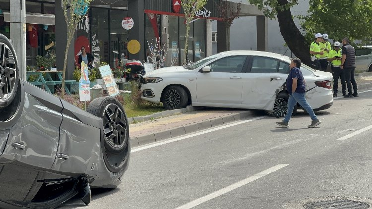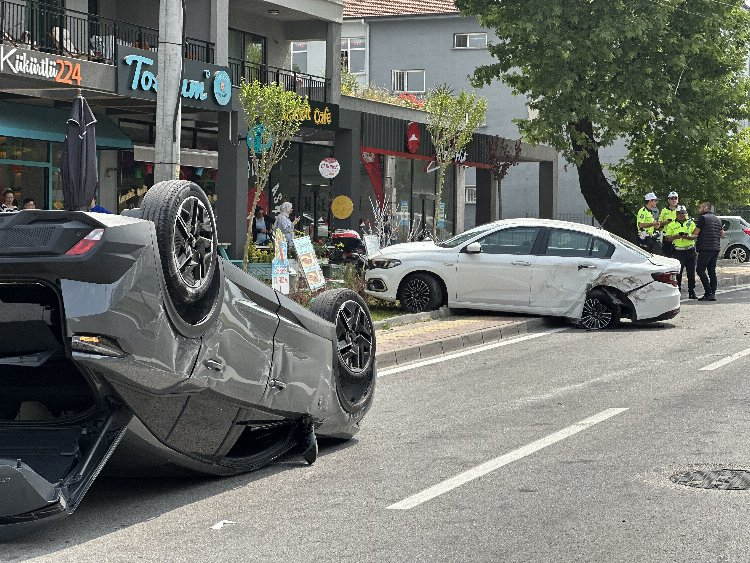 Bursa’da park halindeki araca çarpan otomobil takla attı. Kazada 1 kişi yaralandı.