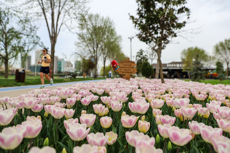 Bursa Büyükşehir Belediyesi ekiplerinin büyük kent parklarına diktiği iki buçuk milyona yakın lale, sümbül ve yazlık çiçekler, kenti baharın renklerine boyayarak adeta çiçek bahçesine çevirdi.