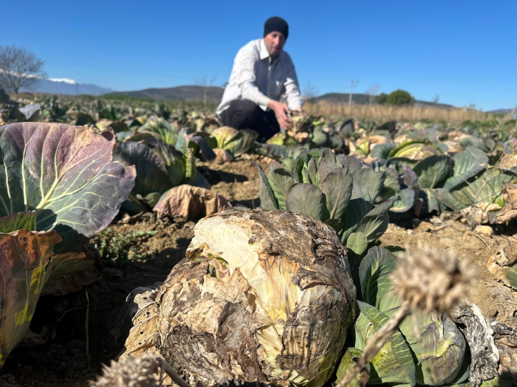 Yeni üretim sezonu geldiğini ve tarlasını değerlendirmek istediğini belirten Akkuş, "Bunun yerine başka ürün ekip zararı kurtarmak istiyorum. Traktörümle birazdan lahanayı parçalayacağım ve tarlayı süreceğim. Şu anda 25 bin lahana yatıyor tarlada. Tarlaya gübre olacak bu lahanalar. Tüm emeklerimiz paramız toprağa karışacak" dedi.
