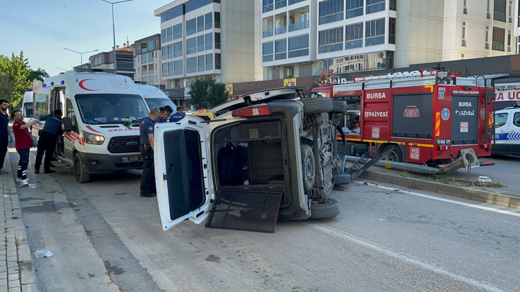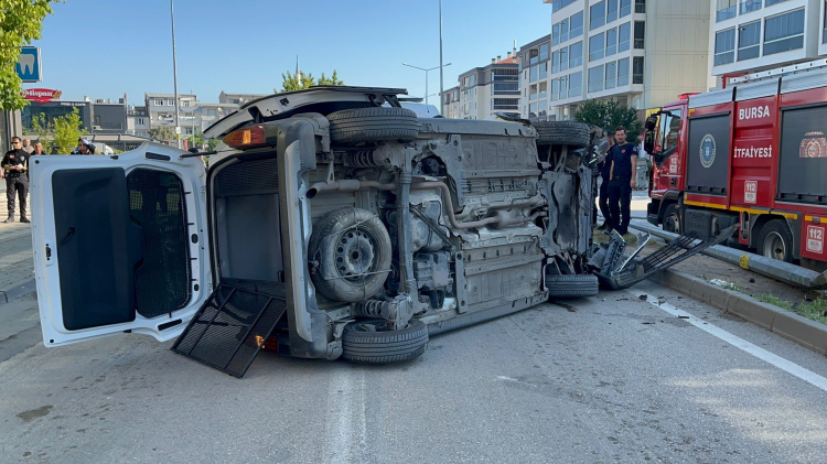 Bursa'da kadına şiddet ihbarından dönen polis aracı takla attı.