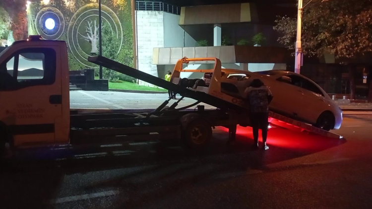 Trafik uygulama noktasında dur ihtarına uymayan 16 SYG 07 plakalı otomobilin sürücüsü M.K., kaçmaya çalışırken Polis ekiplerinin hızlı müdahalesi sonucu durduruldu.
