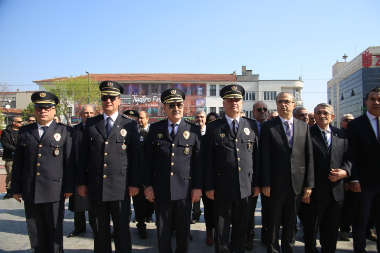 İl Emniyet Müdürü Zaimoğlu’nun anıt önüne çelenk bırakmasıyla başlayan tören, saygı duruşunda bulunulması ve İstiklal Marşı'nın okunması ile devam etti.