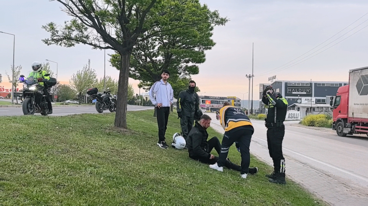Olay, Bursa-Ankara karayolu üzeri İnegöl girişinde meydana geldi. Devriye görevi yapan Emniyet Müdürlüğü Trafik Büro Amirliği ekipleri, plakasını bezle kapatan motosikletin sürücüsüne 'dur' ihtarında bulundu. İhtara uymayan sürücü hızla kaçmaya başladı. Kontrolden çıkan motosiklet devrildi. Sürücü Eren Ş. (21) yaralandı. Yaralı, kaza yerine sevk edilen ambulansla İnegöl Devlet Hastanesine kaldırıldı. Yapılan incelemede sürücünün ehliyetinin olmadığı, motosikletin muayene ve sigortasının olmadığı ortaya çıktı.