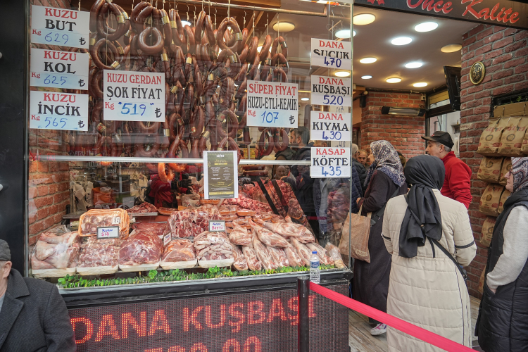 Bursa'da Ramazan alışverişi için kasaplarda metrelerce et ve kıyma kuyruğu