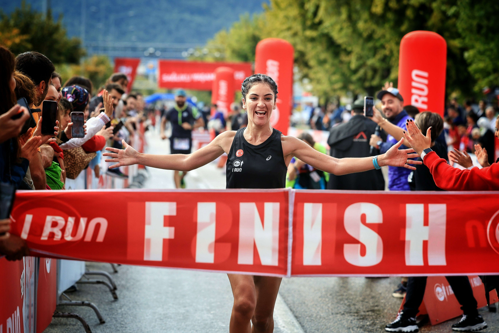 “15K kadınlarda Ece Calp 1 saat 1 dakika 10 saniye, ikinci Nuray Bulut Göktepe 1 saat 4 dakika 52 saniye ve üçüncü Ayşegül Akdoğan 1 saat 6 dakika 44 saniye. 15K erkeklerde birinci Aykut Taşdemir 50 dakika 50 saniye, ikinci Yunus Emre Akkuş 51 dakika 34 saniye ve üçüncü İsmail Özkan 52 dakika 26 saniye. 5K kadınlarda birinci Cemre Civelek 20 dakika 30 saniye, ikinci İklim Aslan 21 dakika 12 saniye ve üçüncü Alena Volkova 24 dakika 15 saniye. 5K erkeklerde birinci Doğa Nalbantoğlu 16 dakika 39 saniye, ikinci Sezgin Uluhan 16 dakika 56 saniye ve üçüncü Muhammed Bilal Osman 17 dakika 56 saniye.”