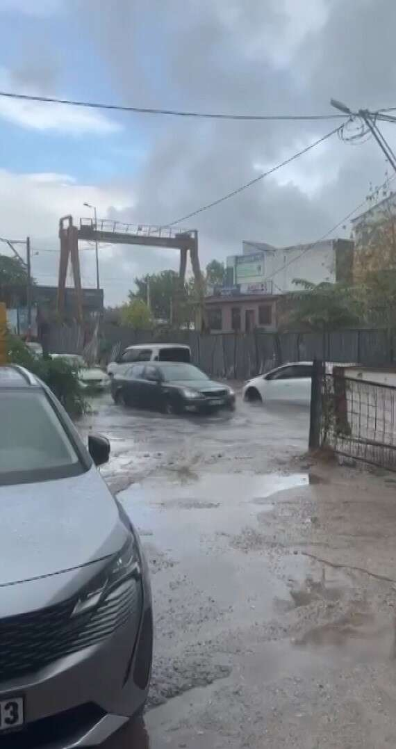 Sağanak yağıştan dolayı rögarlar taştı, araçlar yollarda ilerlemekte güçlük çekti.