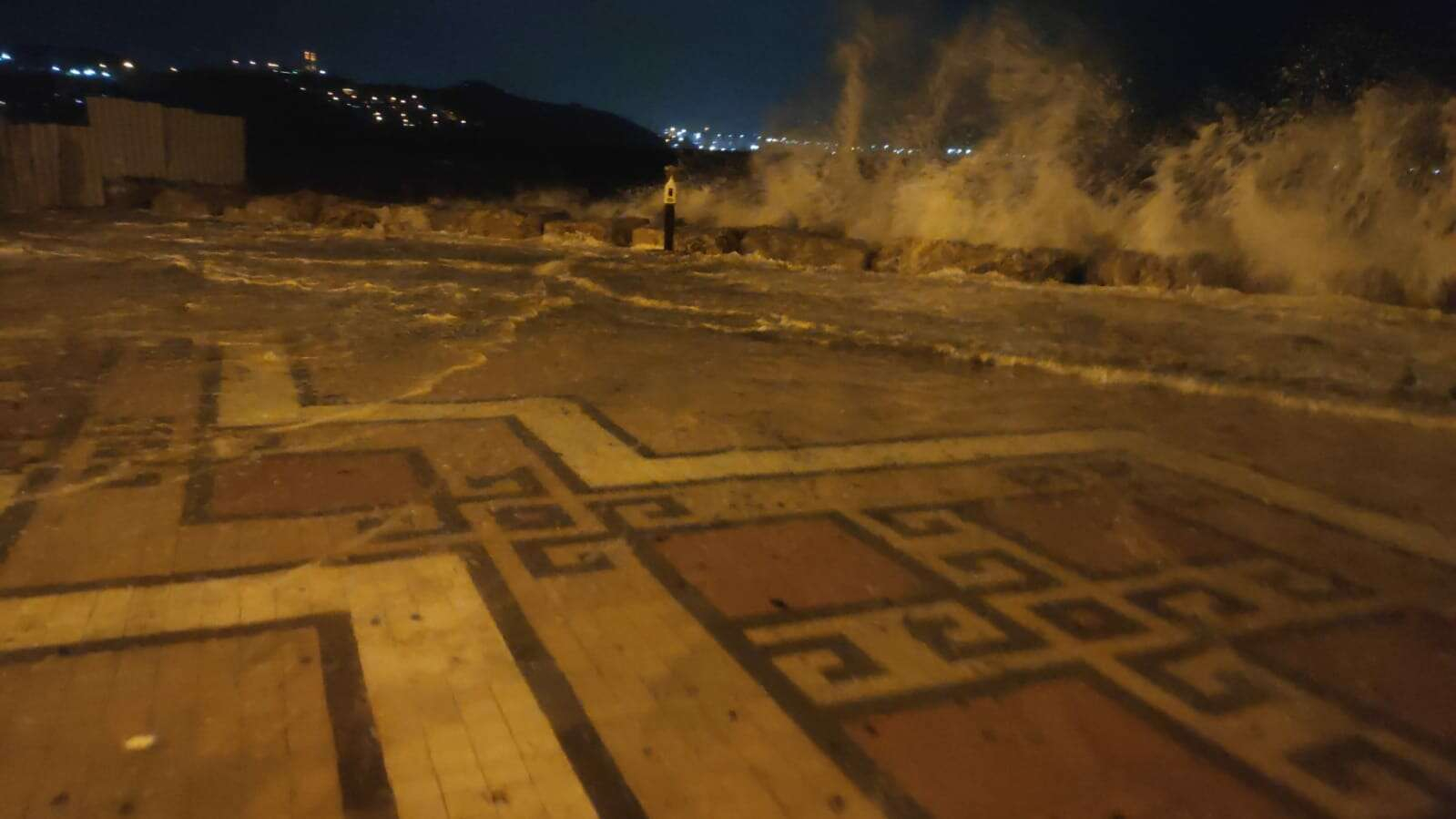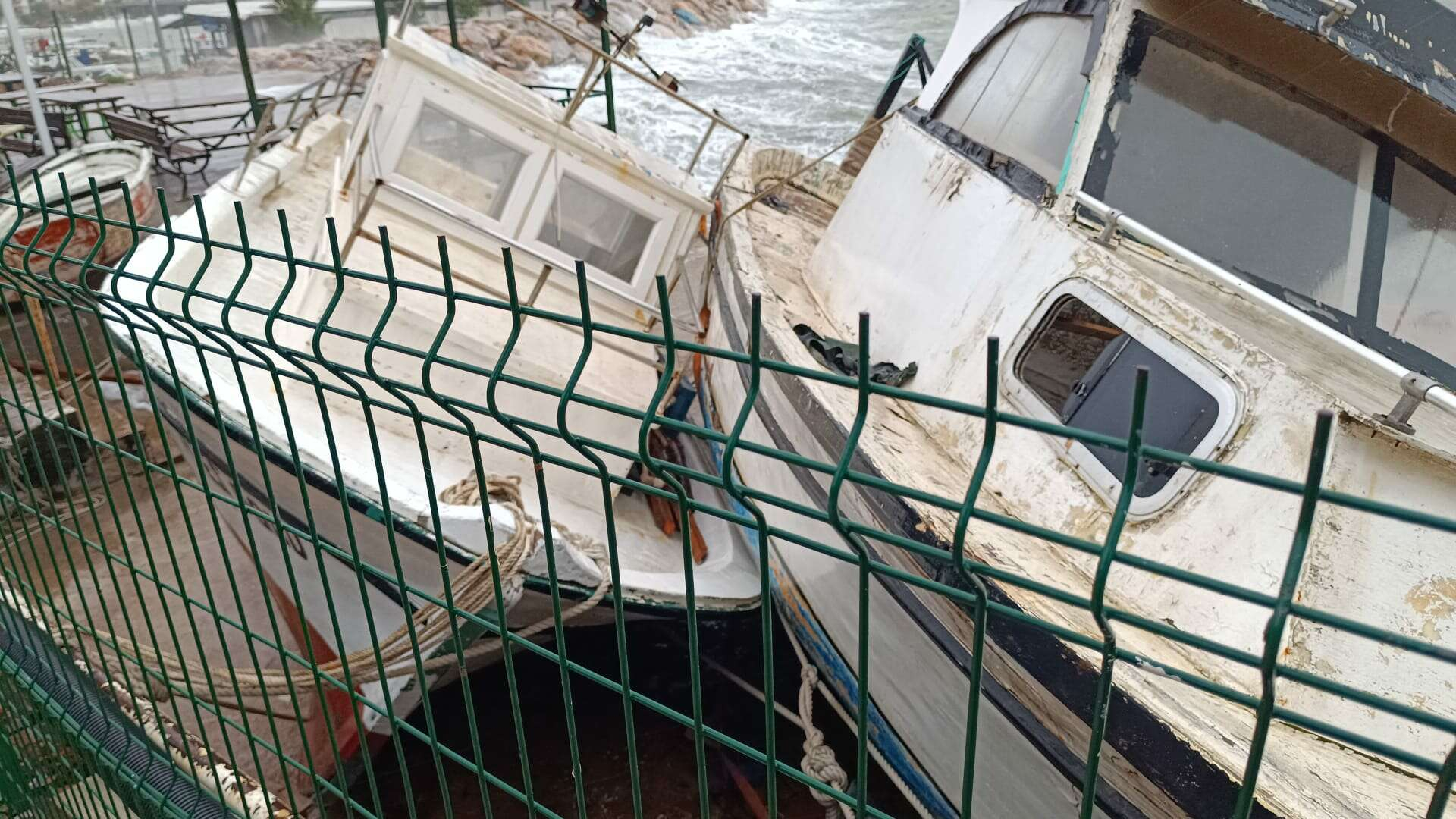 Yağış ve fırtına nedeniyle sahil kenarında yapım aşamasındaki balık satış noktasında hasar meydana geldi, balıkçı tekneleri karaya vurdu.