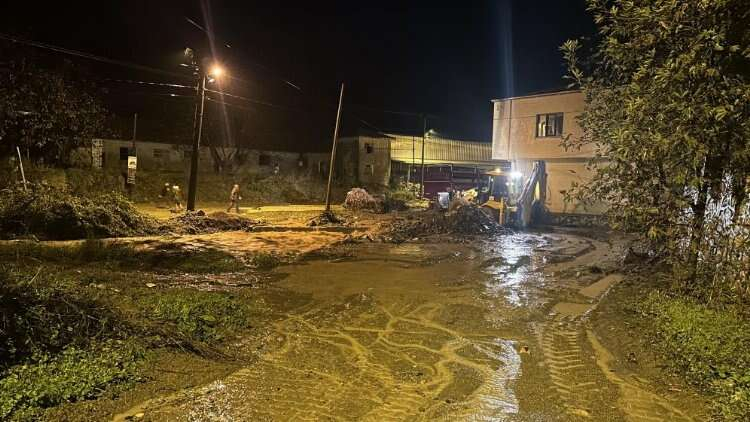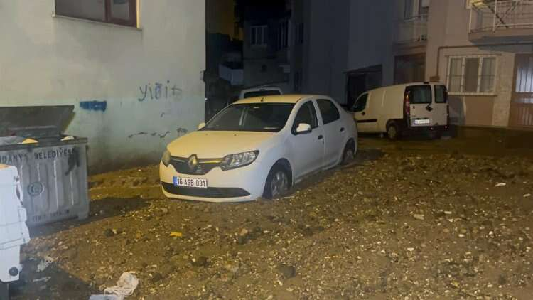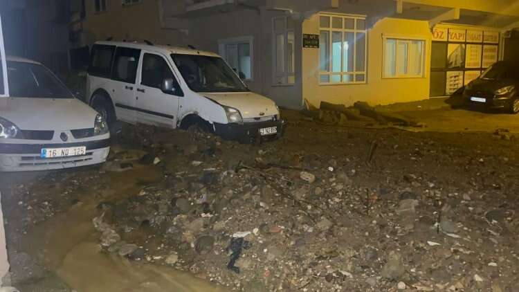 Sokaklar, akan suyun sürüklediği toprak yığınları ve ağaç dallarıyla dolarken park halindeki araçlar ise çamura bulandı. Ekiplerin su basan evlerde temizleme ve hasar tespit çalışmaları sürüyor.