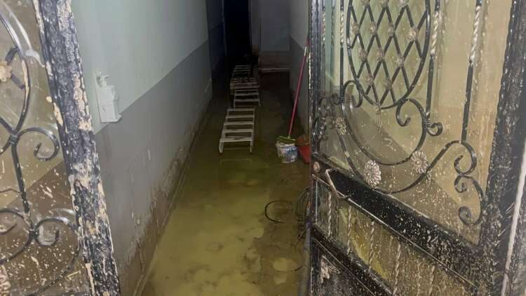 Hasanbey Mahallesi'nde sel nedeniyle ev ve işyerlerinde su baskınları yaşanırken, İşbilen Sokak'ta selin etkisiyle bir apartmanın giriş katındaki daireyi ve deposunu su bastı.